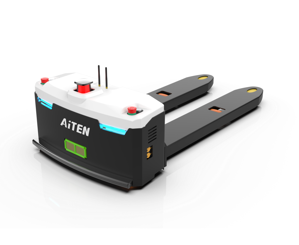 其次是AMR(Autonomous Mobile Robot,自主移动机器人),它基于SLAM技术实现自主导航,灵活性更高,能够动态避障,适合复杂多变的环境。例如,AiTEN海豚之星的TP100就是一款典型的 AMR,它采用双激光雷达融合导航系统,精度高达±5mm,具备 360°安全避障能力。